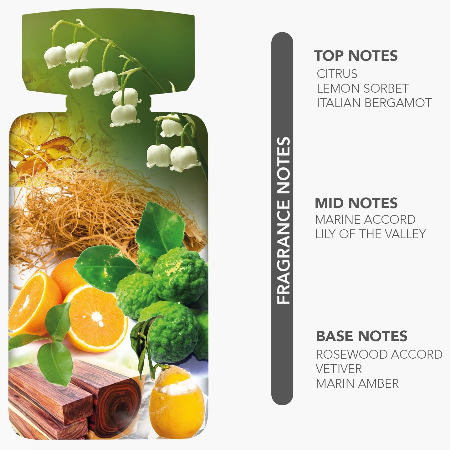 Note de vârf: Bergamotă italiană, Sorbet de lămâie